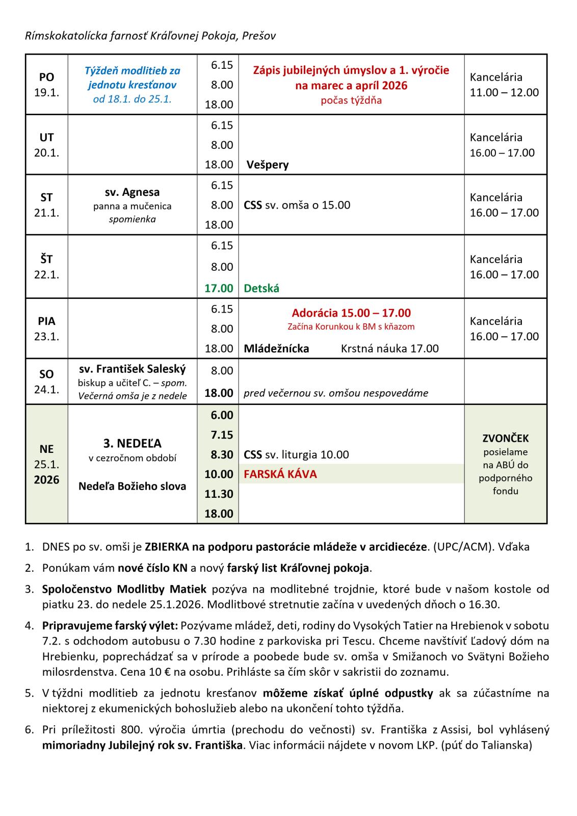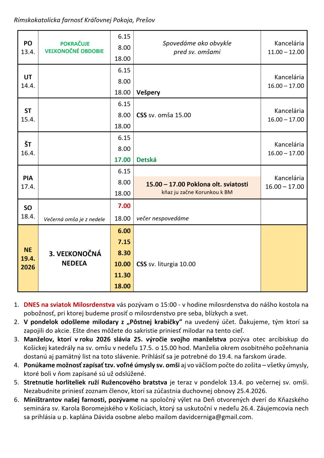 FARSKÉ OZNAMY