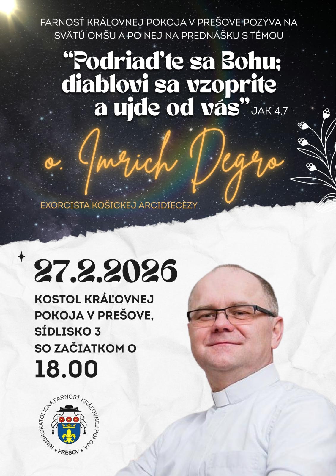 Pozvánka na prednášku o. Imrich Degro 27.2.