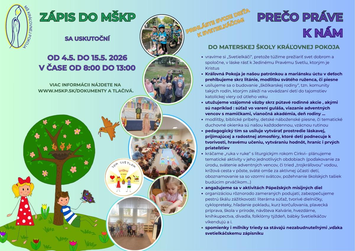 Zápis do MŠ Kráľovnej pokoja od 4.5.